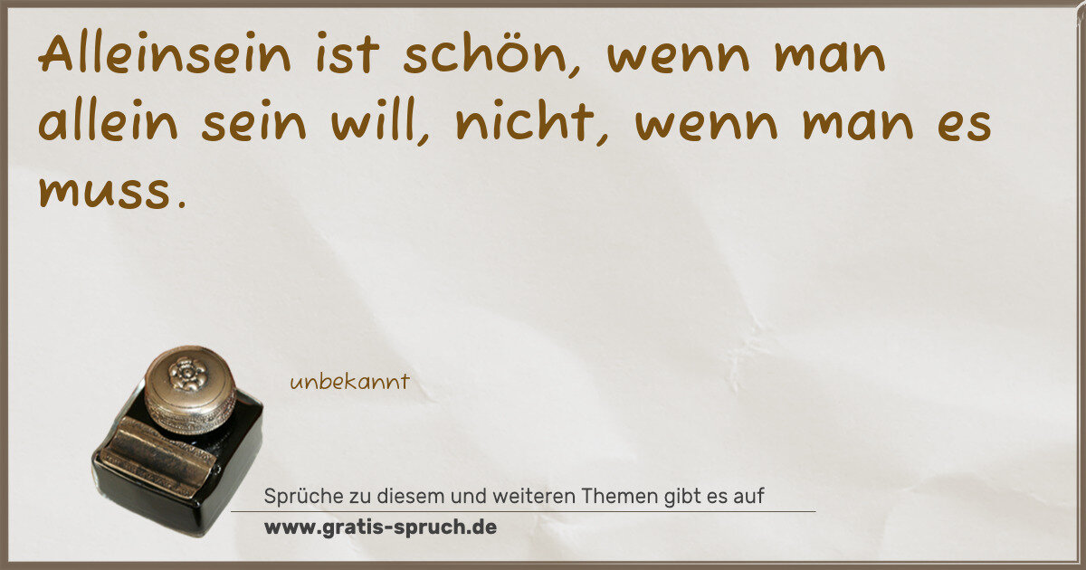 Alleinsein ist schön, wenn man allein sein will, nicht, wenn man es muss.