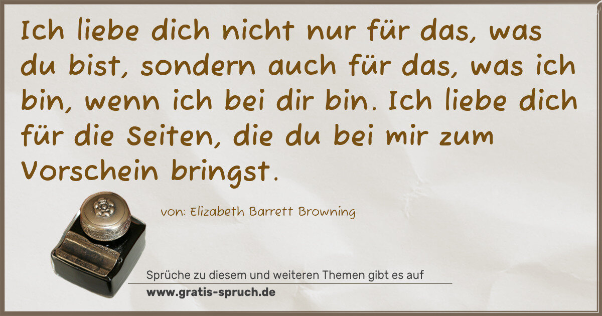 Ich liebe dich nicht nur für das, was du bist, sondern auch für das, was ich bin, wenn ich bei dir bin. Ich liebe dich für die Seiten, die du bei mir zum Vorschein bringst.