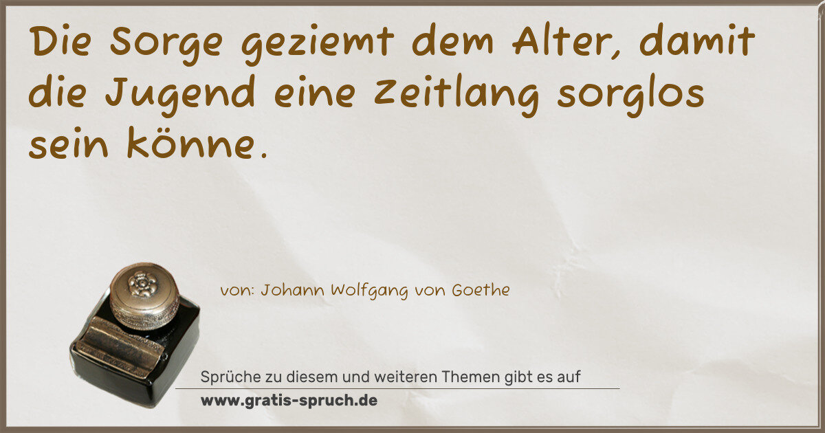 Die Sorge geziemt dem Alter, damit die Jugend eine Zeitlang sorglos sein könne.