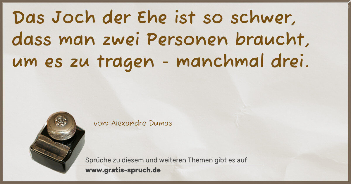 Das Joch der Ehe ist so schwer, dass man zwei Personen braucht, um es zu tragen - manchmal drei.
