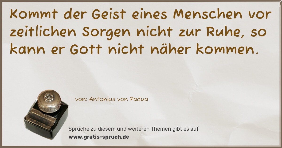 Kommt der Geist eines Menschen vor zeitlichen Sorgen nicht zur Ruhe, so kann er Gott nicht näher kommen.