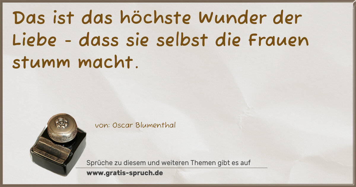 Das ist das höchste Wunder der Liebe - dass sie selbst die Frauen stumm macht.