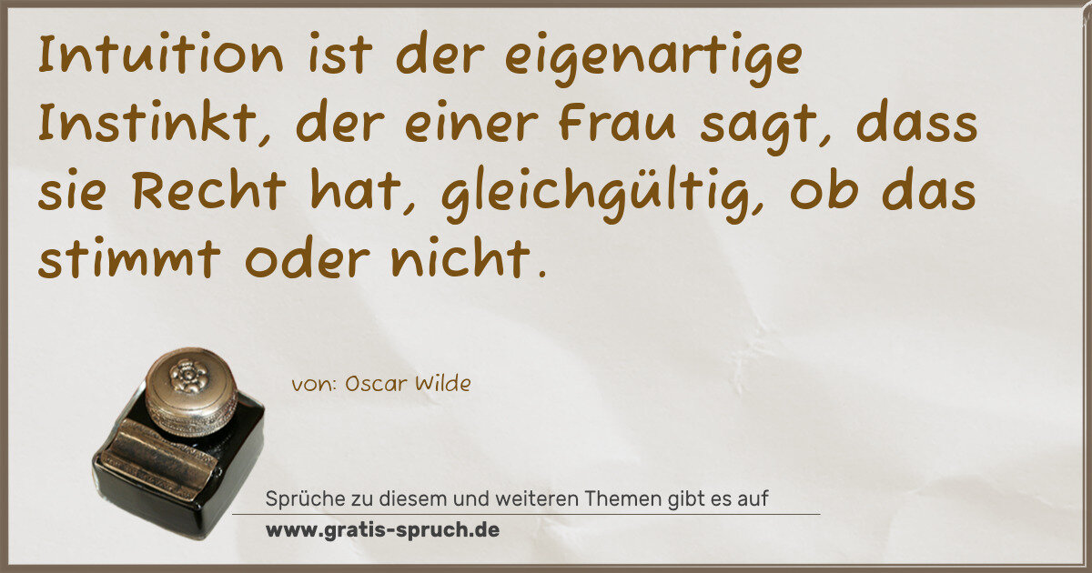 Intuition ist der eigenartige Instinkt, der einer Frau sagt, dass sie Recht hat, gleichgültig, ob das stimmt oder nicht.