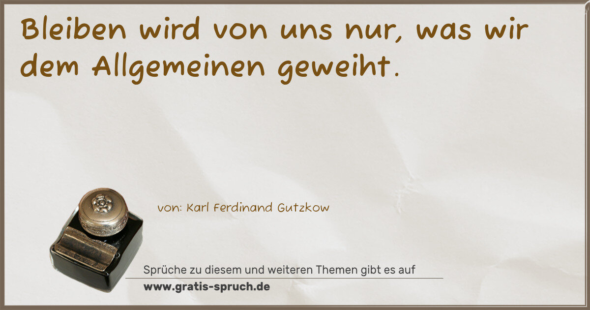 Bleiben wird von uns nur, was wir dem Allgemeinen geweiht.