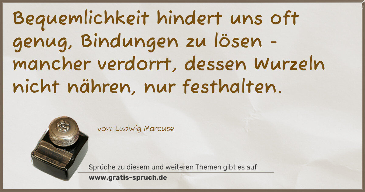 Bequemlichkeit hindert uns oft genug, Bindungen zu lösen - mancher verdorrt, dessen Wurzeln nicht nähren, nur festhalten.