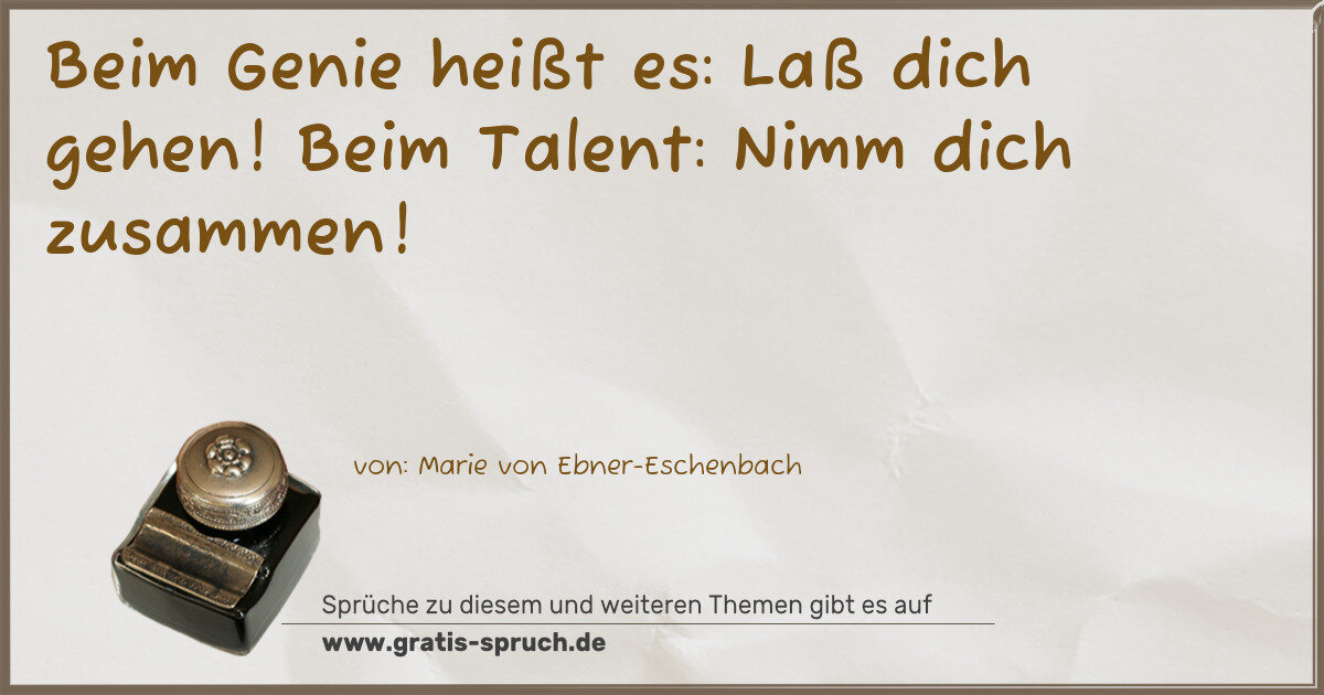 Beim Genie heißt es: Laß dich gehen! Beim Talent: Nimm dich zusammen!