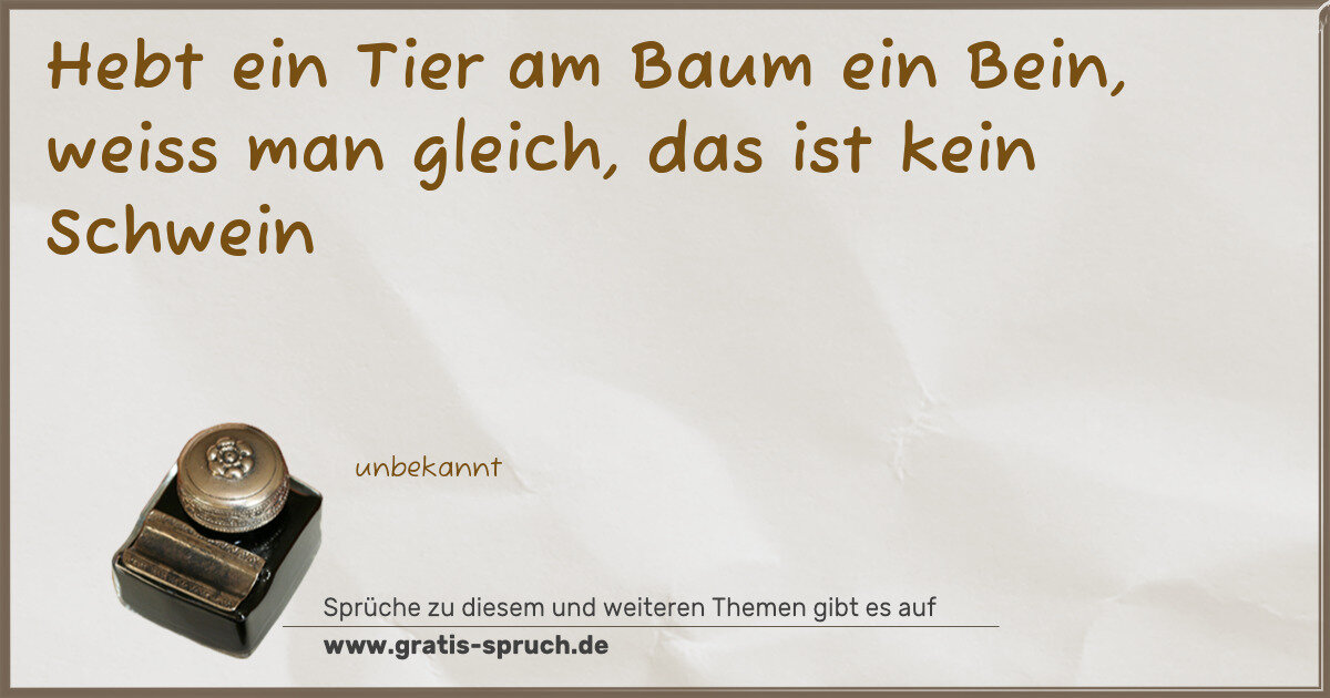 Hebt ein Tier am Baum ein Bein, weiss man gleich, das ist kein Schwein