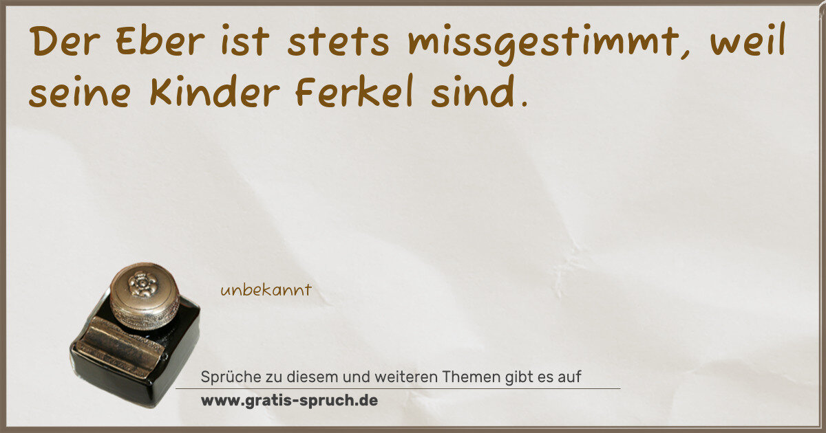 Der Eber ist stets missgestimmt, weil seine Kinder Ferkel sind.