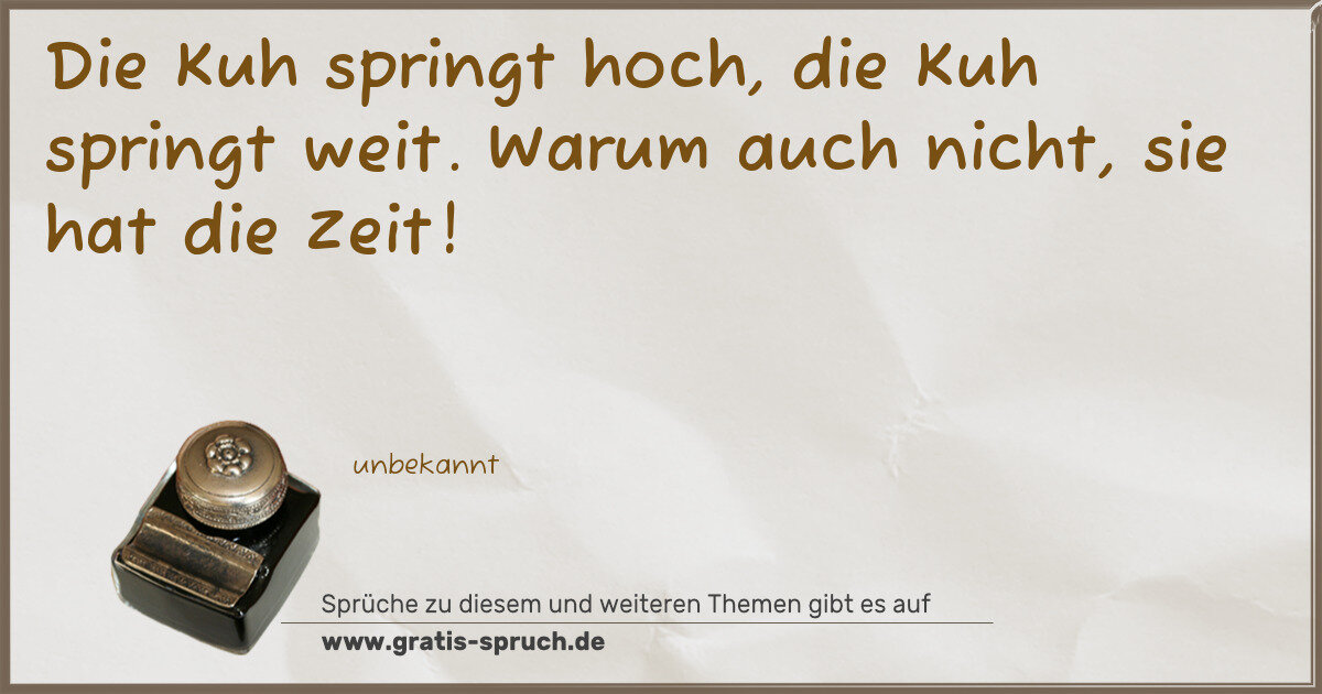 Die Kuh springt hoch, die Kuh springt weit. Warum auch nicht, sie hat die Zeit!