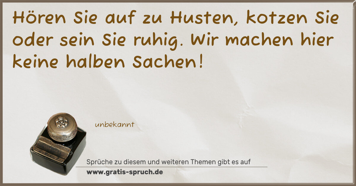 Hören Sie auf zu Husten, kotzen Sie oder sein Sie ruhig. Wir machen hier keine halben Sachen!
