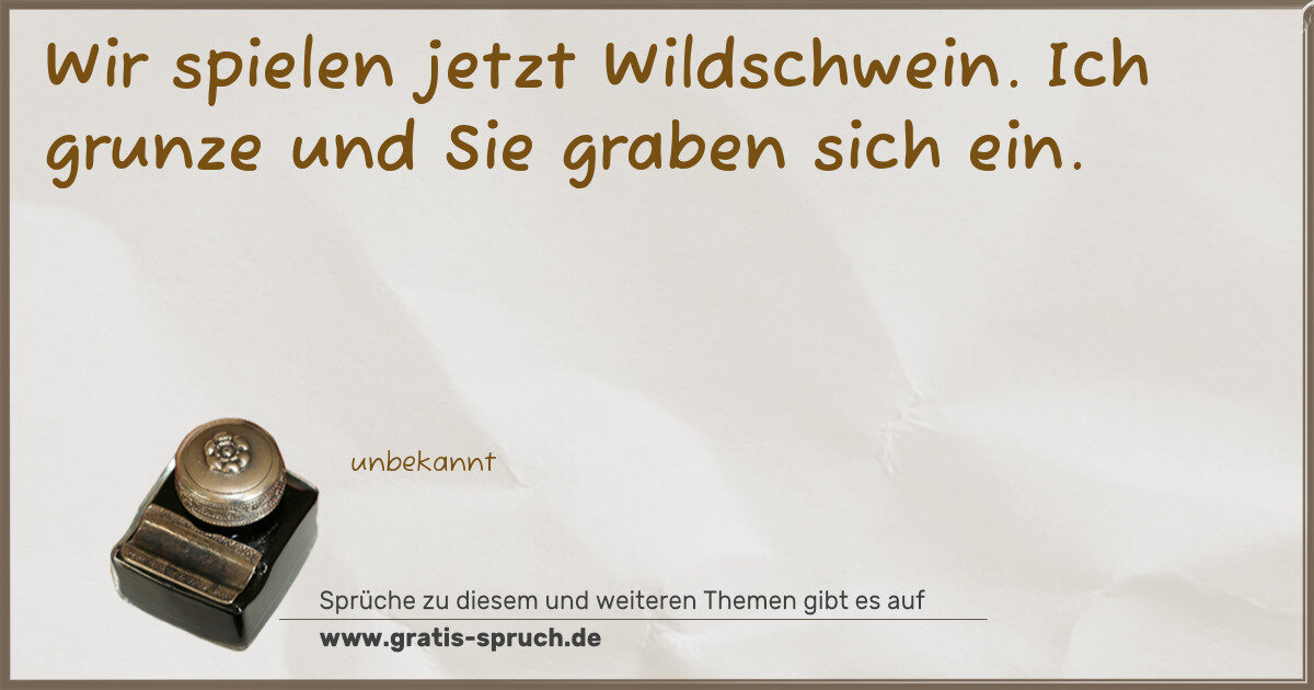 Wir spielen jetzt Wildschwein. Ich grunze und Sie graben sich ein.
