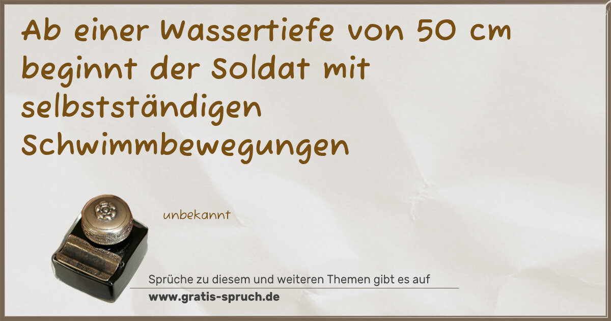 Ab einer Wassertiefe von 50 cm beginnt der Soldat mit selbstständigen Schwimmbewegungen
