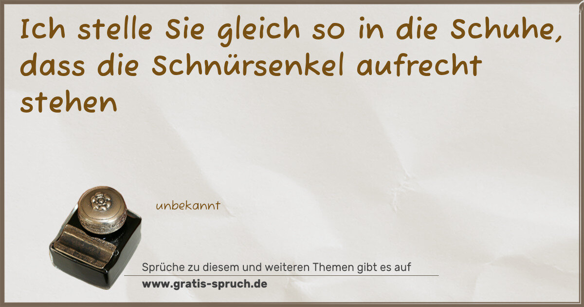 Ich stelle Sie gleich so in die Schuhe, dass die Schnürsenkel aufrecht stehen