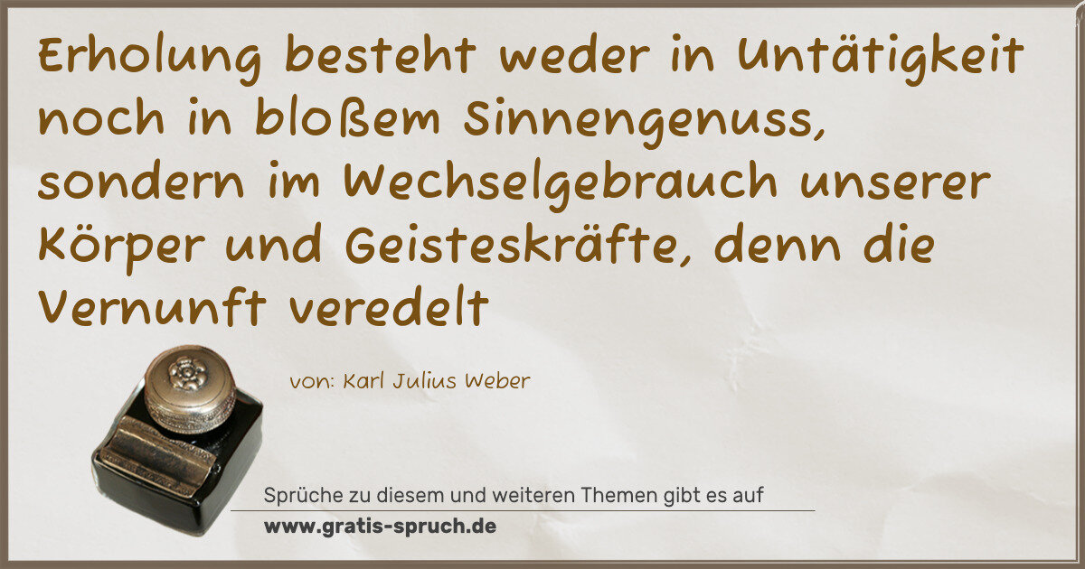 Erholung besteht weder in Untätigkeit noch in bloßem Sinnengenuss, sondern im Wechselgebrauch unserer Körper und Geisteskräfte, denn die Vernunft veredelt