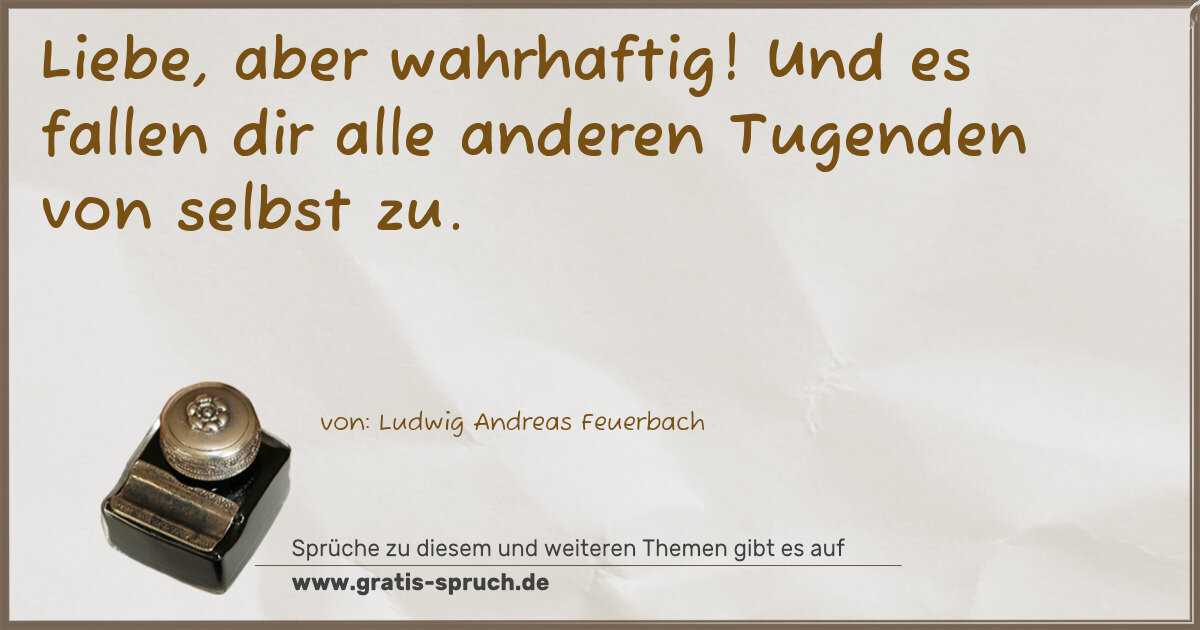Liebe, aber wahrhaftig! Und es fallen dir alle anderen Tugenden von selbst zu.