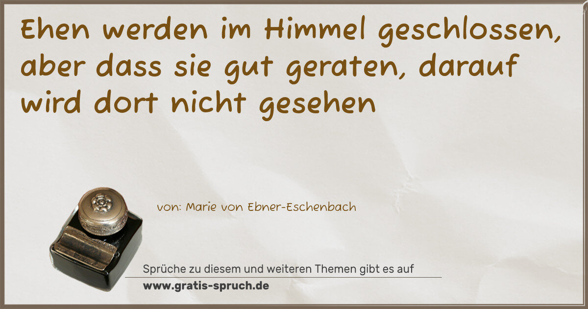 Ehen werden im Himmel geschlossen, aber dass sie gut geraten, darauf wird dort nicht gesehen