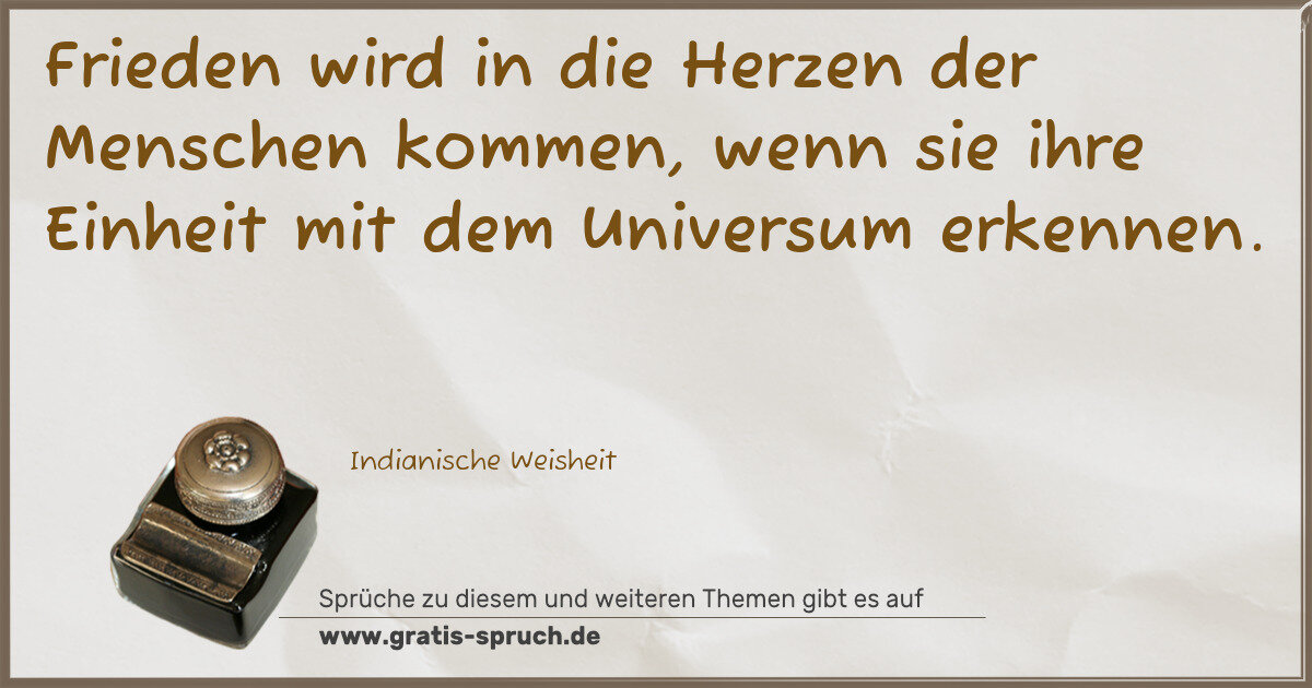 Frieden wird in die Herzen der Menschen kommen, wenn sie ihre Einheit mit dem Universum erkennen.