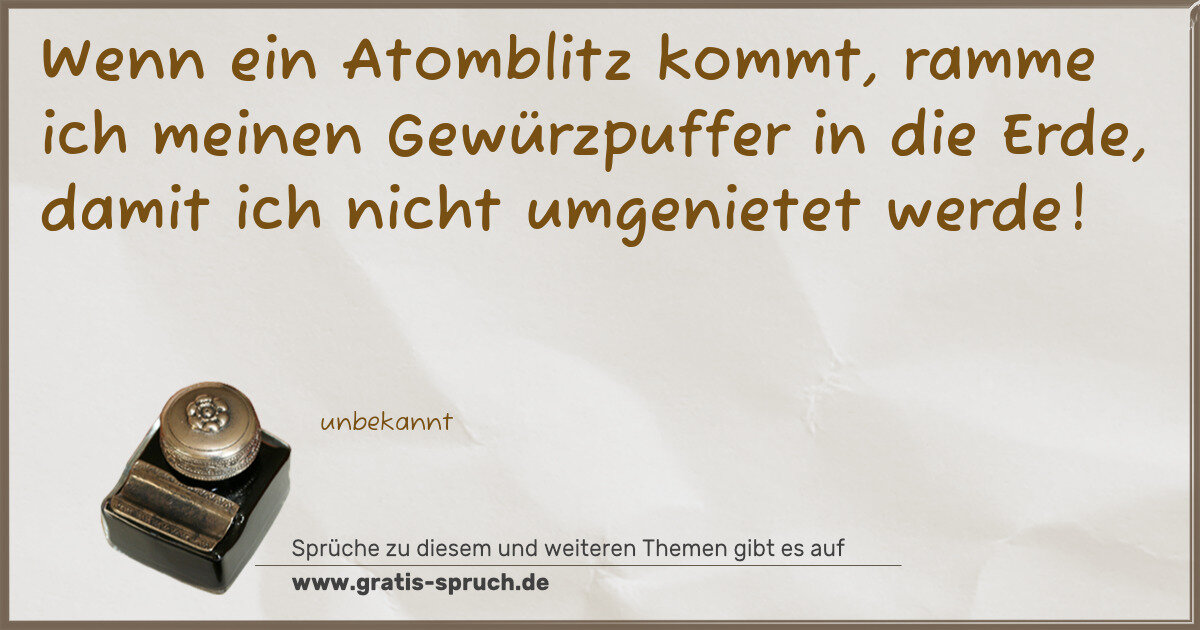 Wenn ein Atomblitz kommt, ramme ich meinen Gewürzpuffer in die Erde, damit ich nicht umgenietet werde!