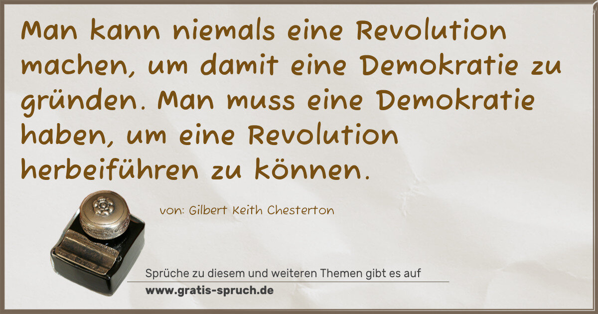 Man kann niemals eine Revolution machen, um damit eine Demokratie zu gründen. Man muss eine Demokratie haben, um eine Revolution herbeiführen zu können.