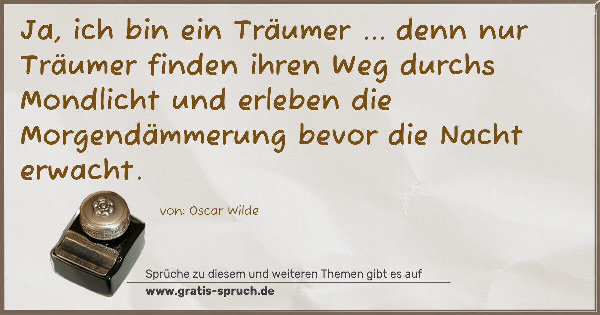 Ja, ich bin ein Träumer ... denn nur Träumer finden ihren Weg durchs Mondlicht und erleben die Morgendämmerung bevor die Nacht erwacht.