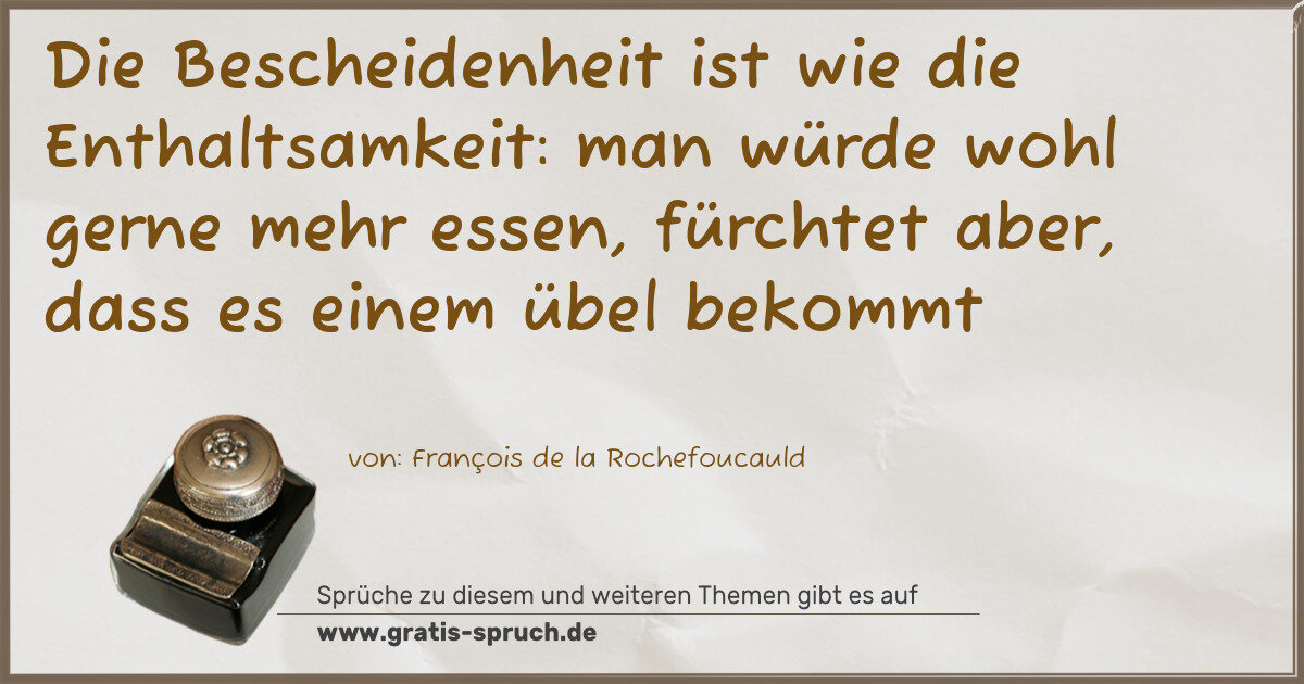 Die Bescheidenheit ist wie die Enthaltsamkeit: man würde wohl gerne mehr essen, fürchtet aber, dass es einem übel bekommt