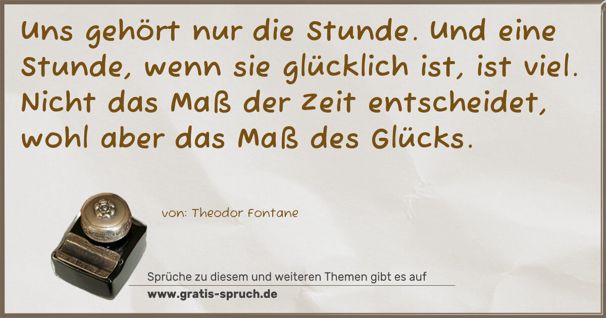 Uns gehört nur die Stunde. Und eine Stunde, wenn sie glücklich ist, ist viel. Nicht das Maß der Zeit entscheidet, wohl aber das Maß des Glücks.