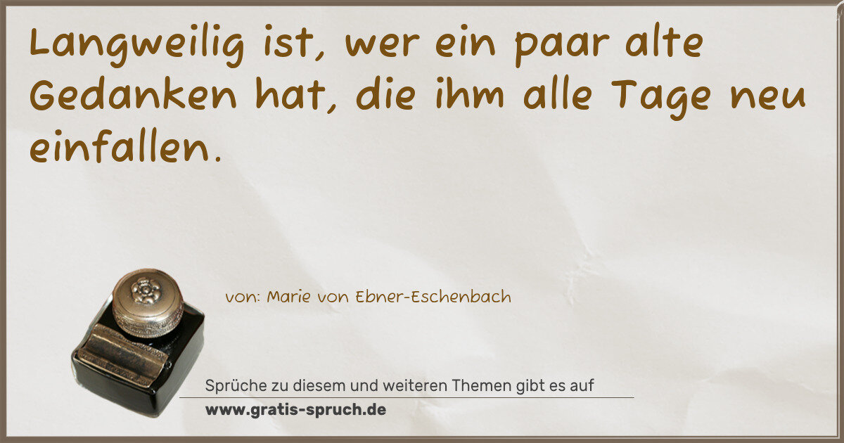 Langweilig ist, wer ein paar alte Gedanken hat, die ihm alle Tage neu einfallen.