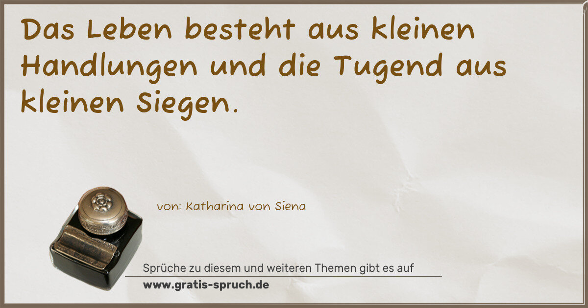 Das Leben besteht aus kleinen Handlungen und die Tugend aus kleinen Siegen.