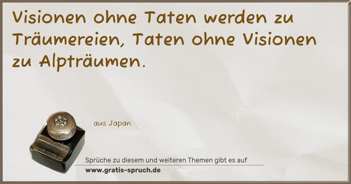 Visionen ohne Taten werden zu Träumereien, Taten ohne Visionen zu Alpträumen.