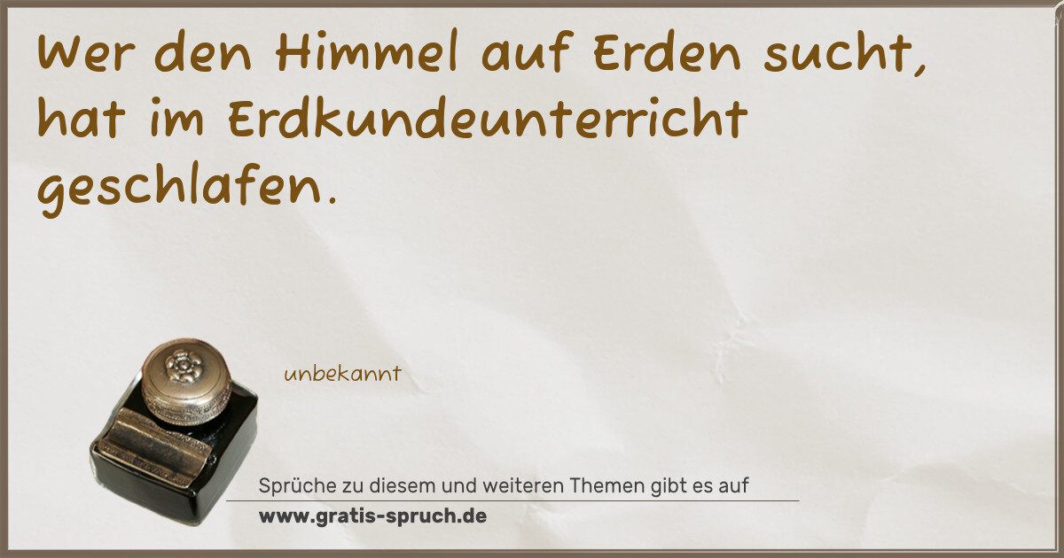 Wer den Himmel auf Erden sucht, hat im Erdkundeunterricht geschlafen.
