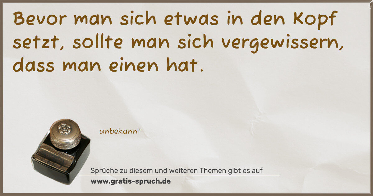 Bevor man sich etwas in den Kopf setzt, sollte man sich vergewissern, dass man einen hat.
