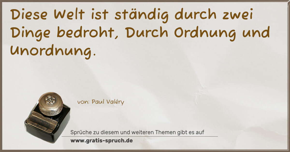 Diese Welt ist ständig durch zwei Dinge bedroht, Durch Ordnung und Unordnung.