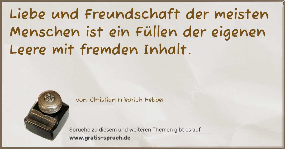Liebe und Freundschaft der meisten Menschen ist ein Füllen der eigenen Leere mit fremden Inhalt.
