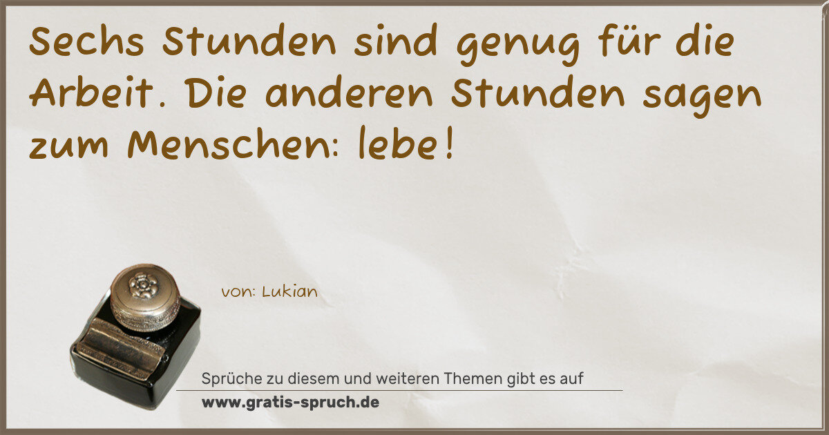 Sechs Stunden sind genug für die Arbeit. Die anderen Stunden sagen zum Menschen: lebe!