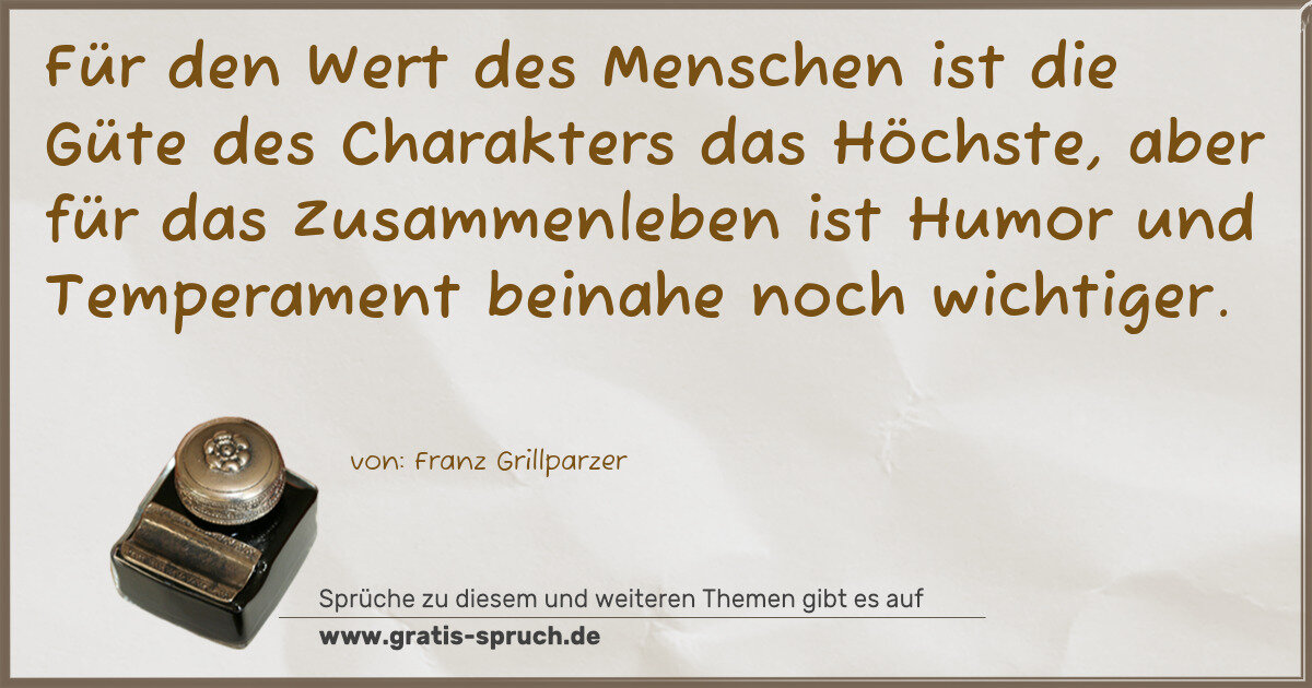 Für den Wert des Menschen ist die Güte des Charakters das Höchste, aber für das Zusammenleben ist Humor und Temperament beinahe noch wichtiger.