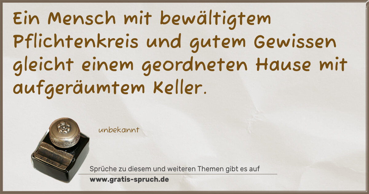 Ein Mensch mit bewältigtem Pflichtenkreis und gutem Gewissen gleicht einem geordneten Hause mit aufgeräumtem Keller.