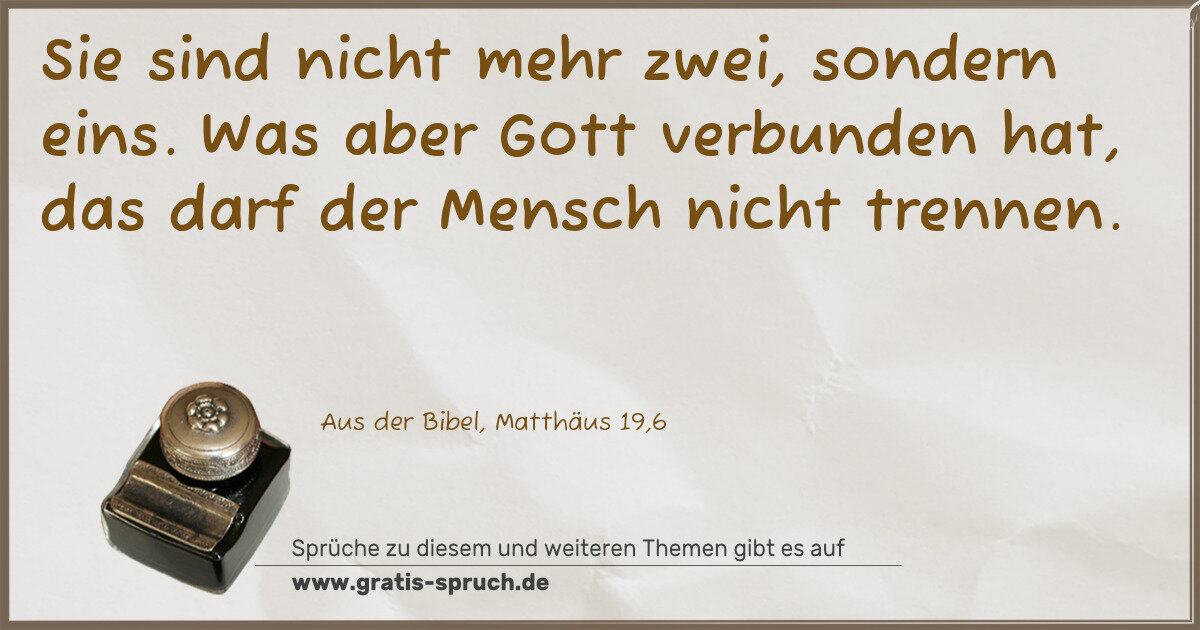Sie sind nicht mehr zwei, sondern eins. Was aber Gott verbunden hat, das darf der Mensch nicht trennen.