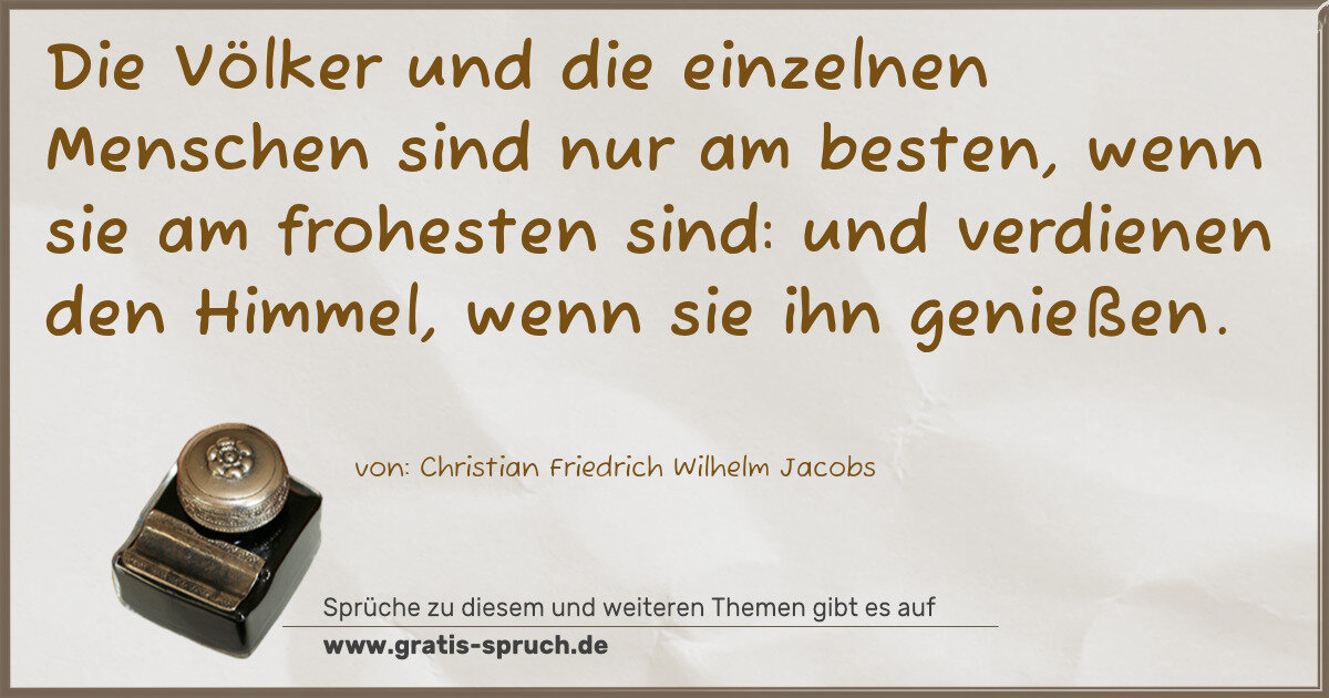 Die Völker und die einzelnen Menschen sind nur am besten, wenn sie am frohesten sind: und verdienen den Himmel, wenn sie ihn genießen.