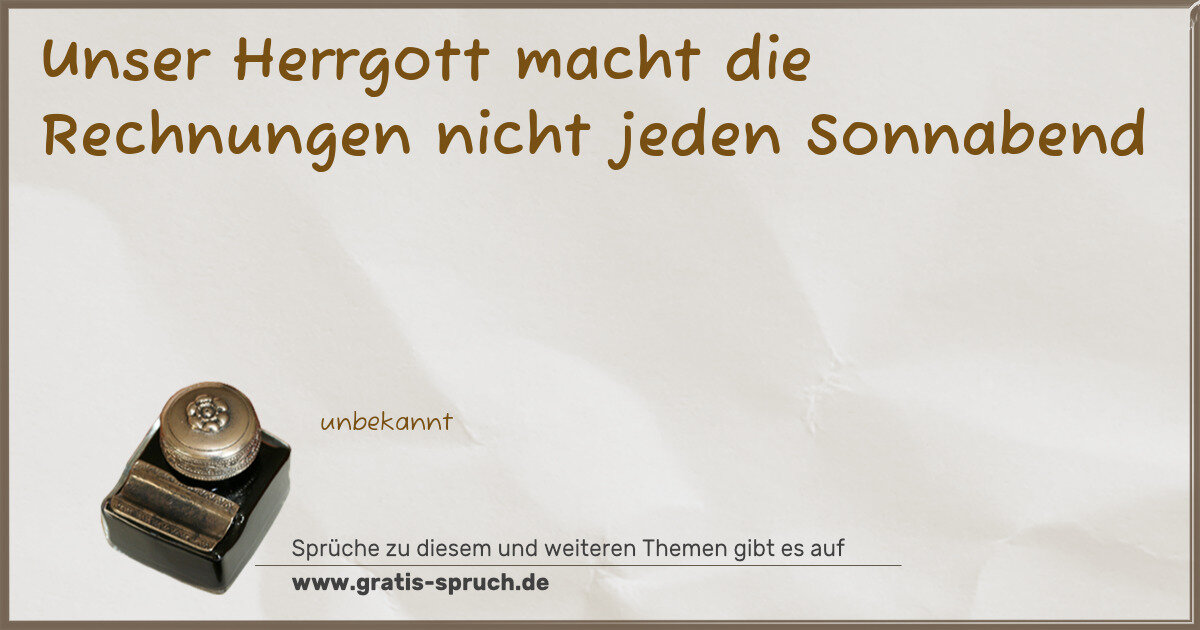 Unser Herrgott macht die Rechnungen nicht jeden Sonnabend