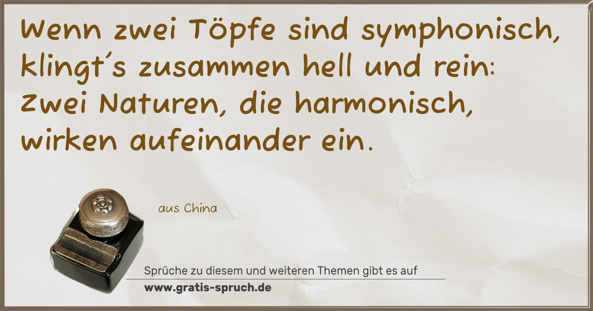 Wenn zwei Töpfe sind symphonisch, klingt's zusammen hell und rein: Zwei Naturen, die harmonisch, wirken aufeinander ein.