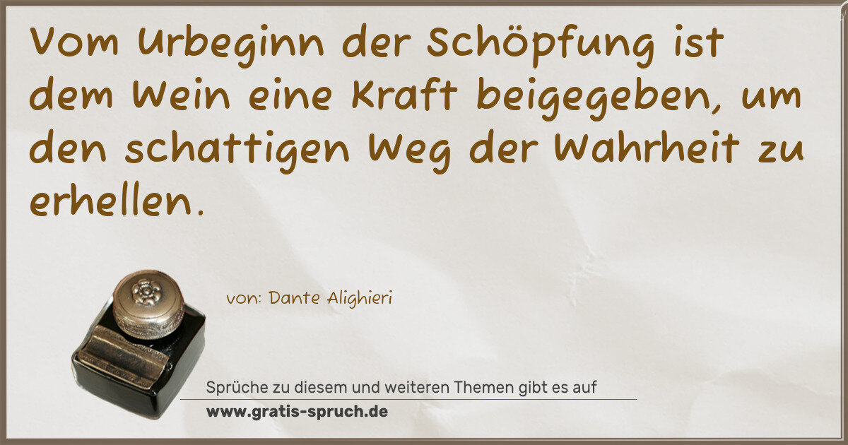 Vom Urbeginn der Schöpfung ist dem Wein eine Kraft beigegeben, um den schattigen Weg der Wahrheit zu erhellen.