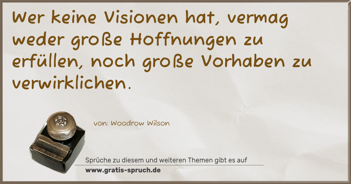 Wer keine Visionen hat, vermag weder große Hoffnungen zu erfüllen, noch große Vorhaben zu verwirklichen.