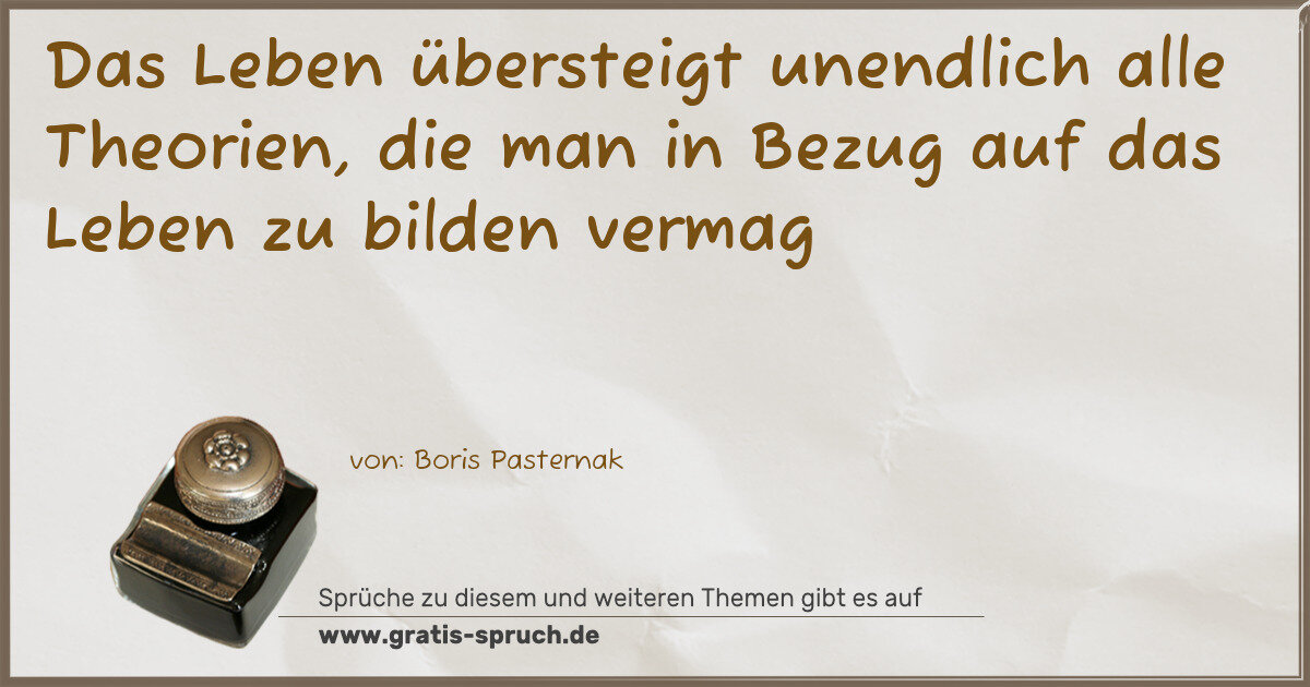 Das Leben übersteigt unendlich alle Theorien, die man in Bezug auf das Leben zu bilden vermag