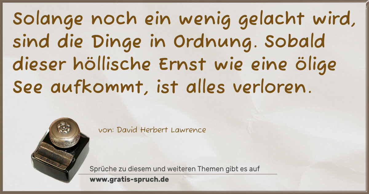 Solange noch ein wenig gelacht wird, sind die Dinge in Ordnung. Sobald dieser höllische Ernst wie eine ölige See aufkommt, ist alles verloren.