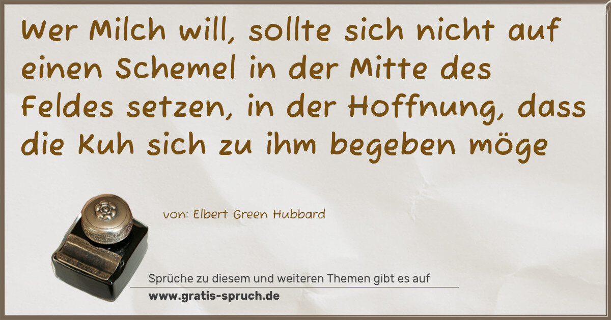 Wer Milch will, sollte sich nicht auf einen Schemel in der Mitte des Feldes setzen, in der Hoffnung, dass die Kuh sich zu ihm begeben möge