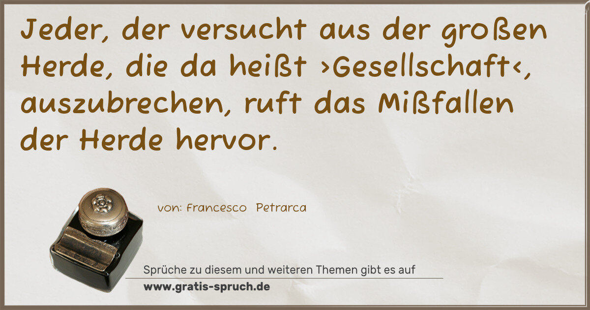 Jeder, der versucht aus der großen Herde, die da heißt ›Gesellschaft‹, auszubrechen, ruft das Mißfallen der Herde hervor.