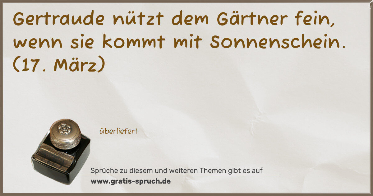 Gertraude nützt dem Gärtner fein, wenn sie kommt mit Sonnenschein. (17. März)