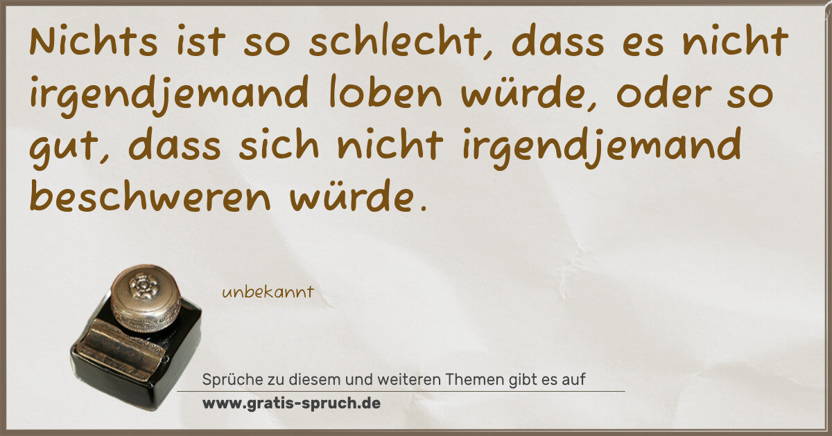 Nichts ist so schlecht, dass es nicht irgendjemand loben würde, oder so gut, dass sich nicht irgendjemand beschweren würde.