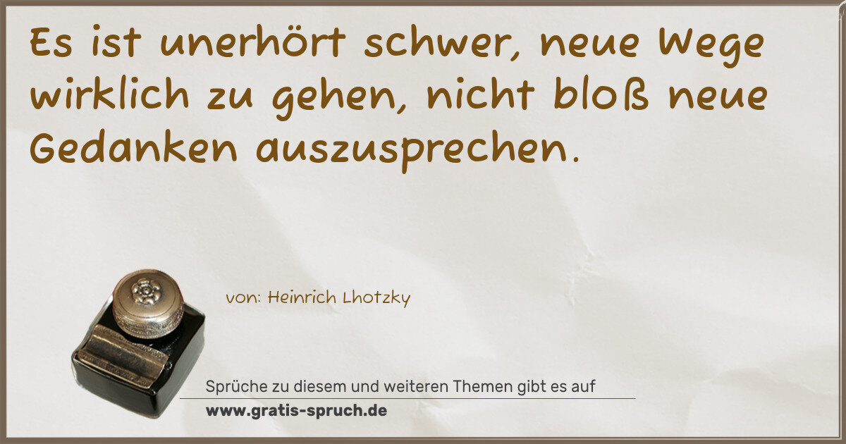 Es ist unerhört schwer, neue Wege wirklich zu gehen, nicht bloß neue Gedanken auszusprechen.