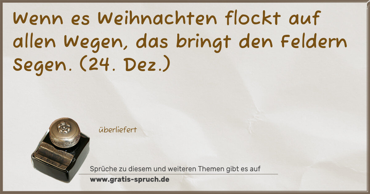 Wenn es Weihnachten flockt auf allen Wegen, das bringt den Feldern Segen. (24. Dez.)